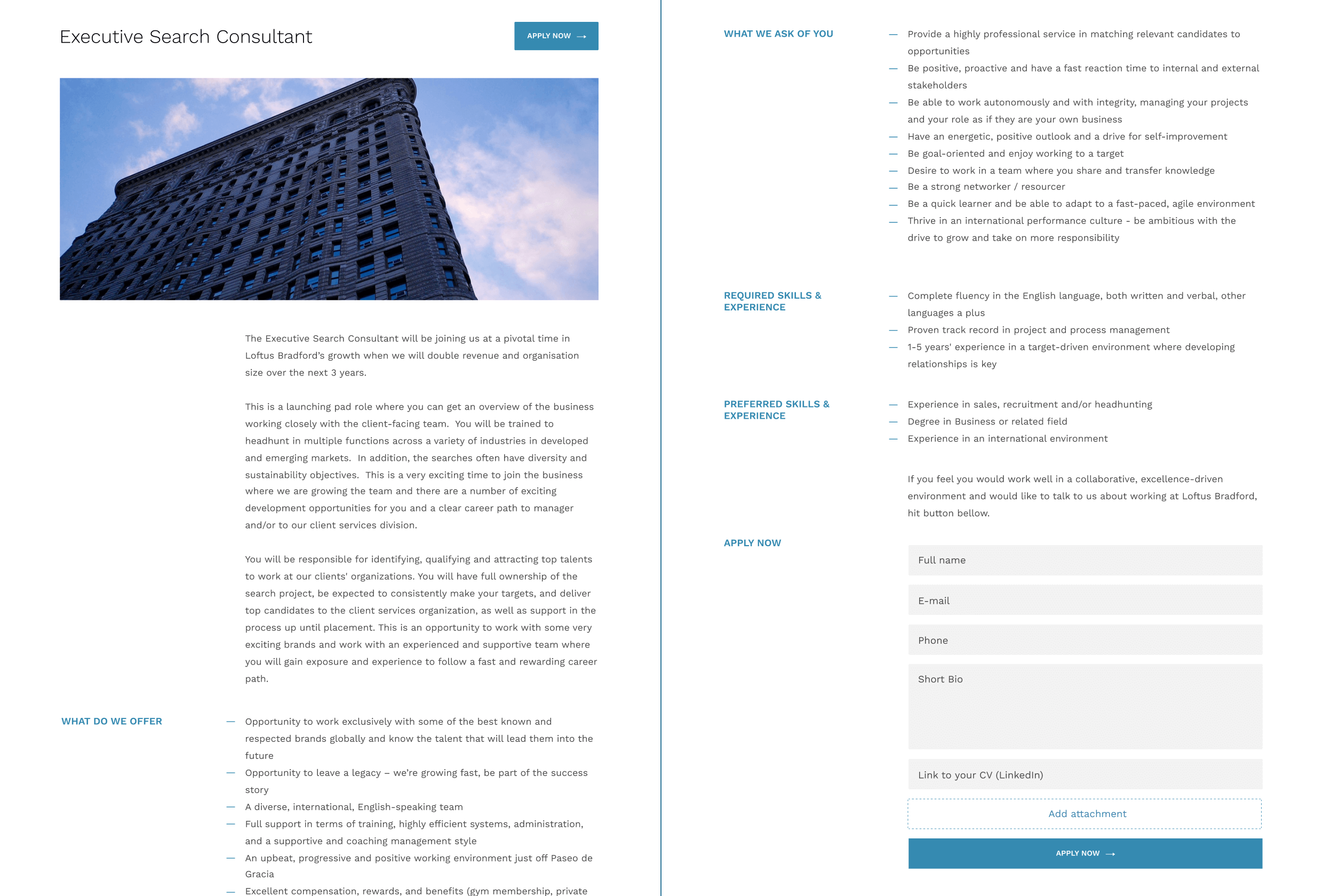Loftus Bradford is a a global, retained, boutique executive search firm based in Barcelona. This is one of the design directions that we took, but unfortunately did not made the cut.
