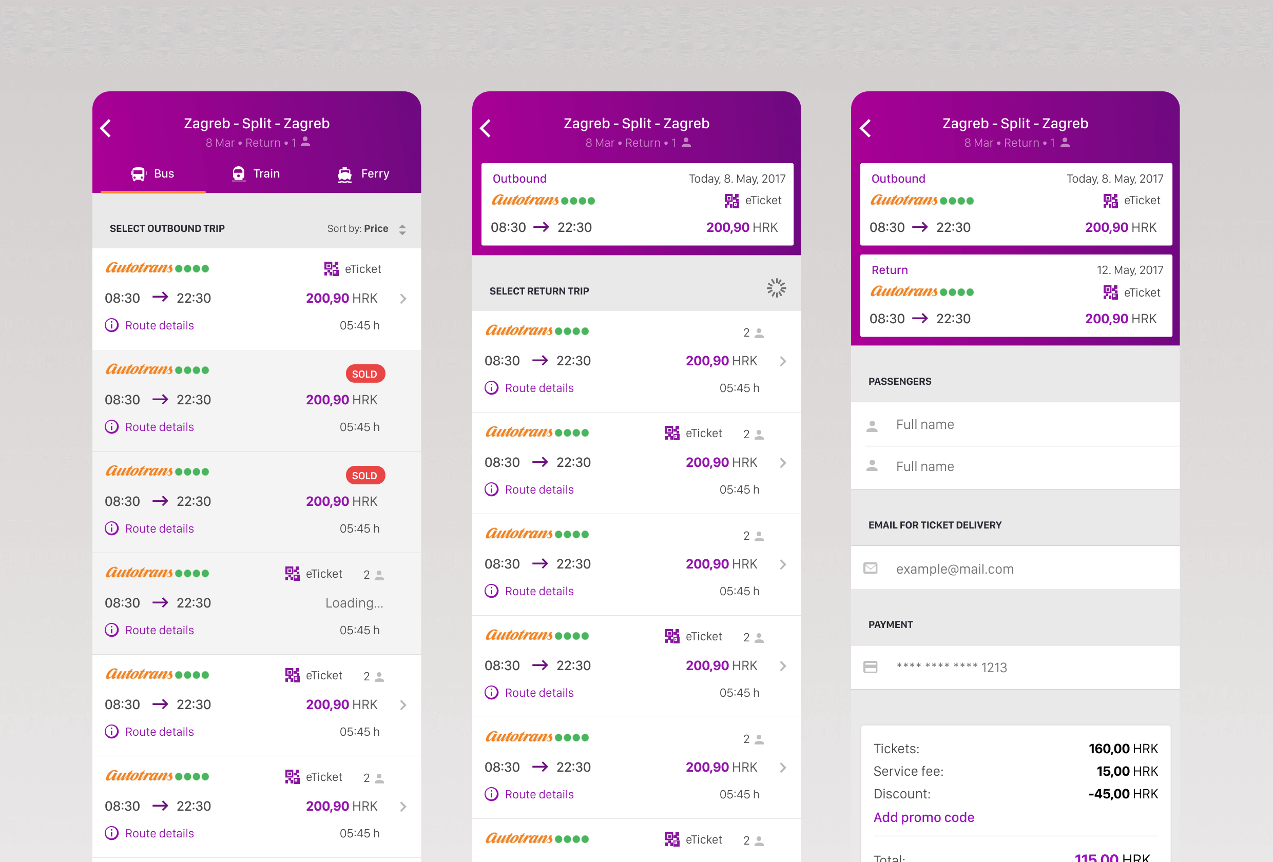 Vollo is a bus search, comparison, and booking service in Croatia. It allows customers to search, compare and book bus ticket. Our main goal was to build a simple and easy-to-use solution with high focus on first time users.